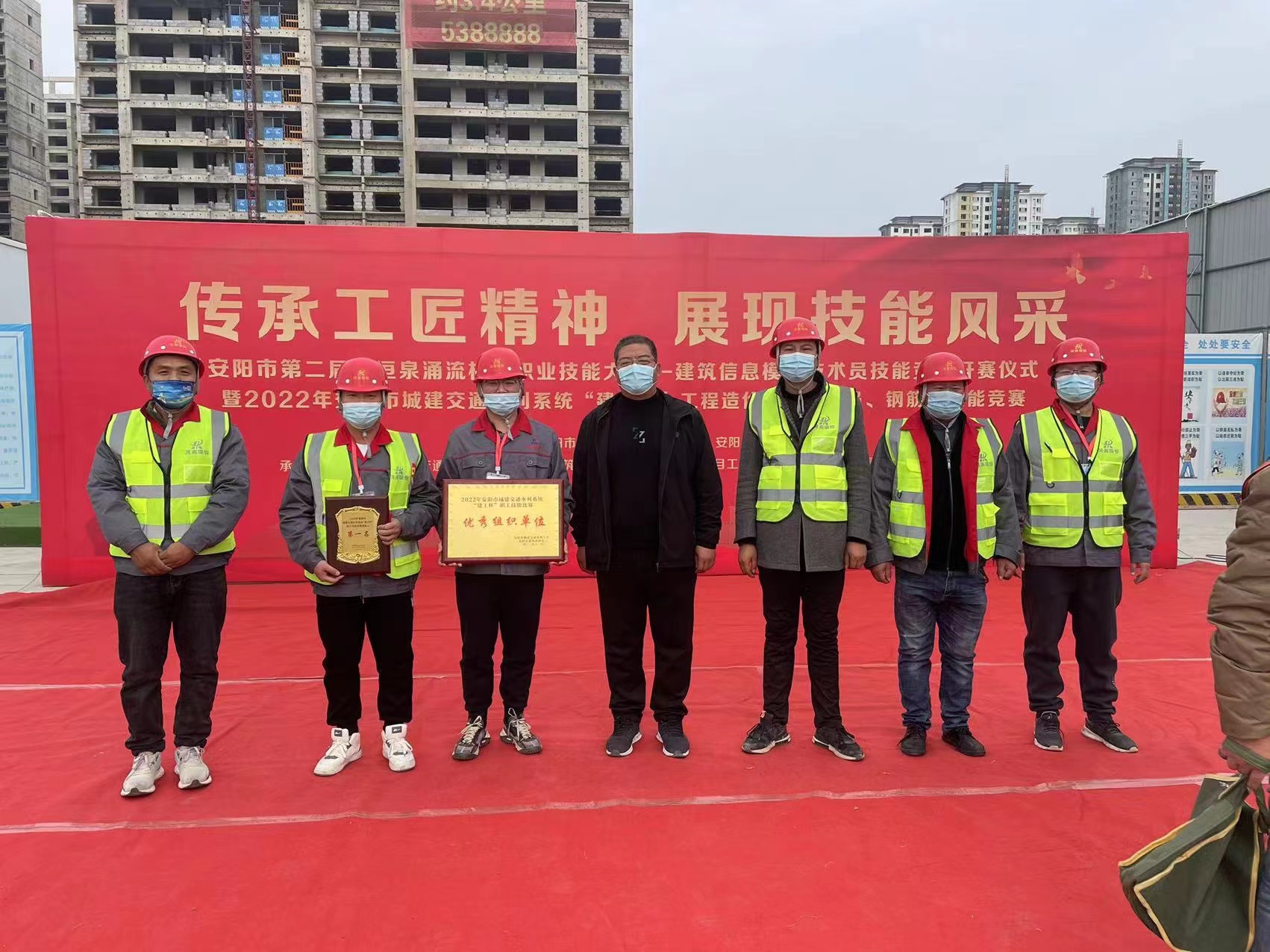 2022年11月4日,公司組織員工參加安陽市第二屆“洹泉涌流杯”職業(yè)技能大賽——建筑信息模型技術(shù)員技能競賽,并取得了企業(yè)優(yōu)秀組織獎(jiǎng)和鋼筋工競賽第一名榮譽(yù)。
